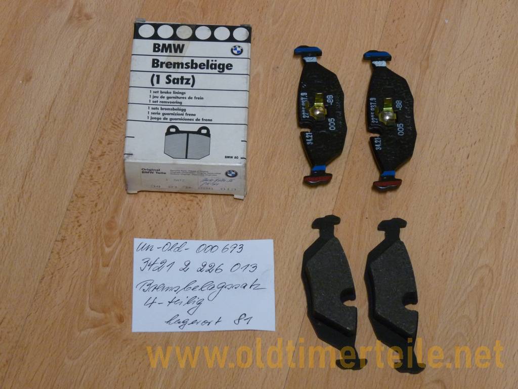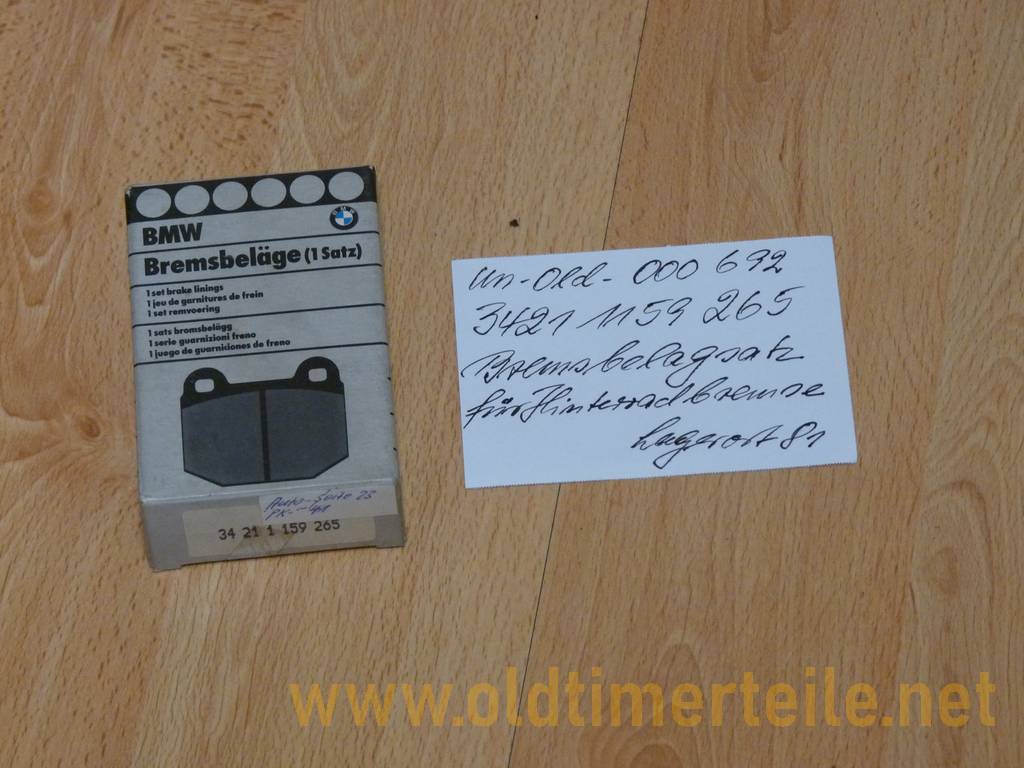 Brake shoe set 2-piece approx. 160 mm long, width approx. 30 mm with glued-on pads. The parts come from a disbanded vehicle parts warehouse for various makes such as Fiat, Vespa, Renault, Citroen, NSU VW and other vehicle brands. The brake shoes could not be identified |