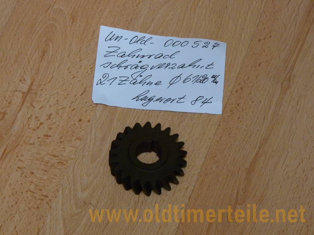 Zahnrad schrägverzahnt, 21 Zähne, Durchmesser 61/ 20 mm, Bohrung mit Nute. Breite 14/ 17 mm. Die Teile stammen aus einem BMW Neuteilelager in dem auch vereinzelt Teile anderer Fabrikate lagen. |