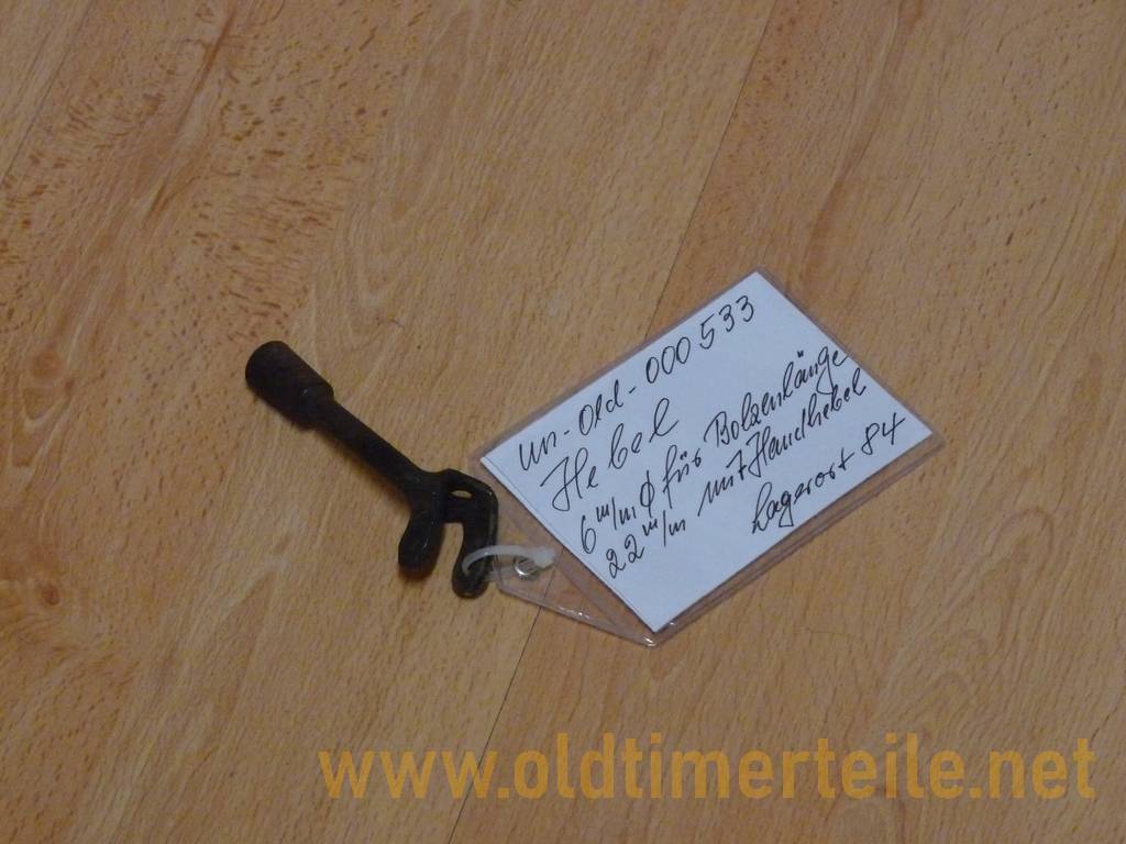 Hebel für Wellendurchmesser 6 mm, für Bolzenlänge 22 mm, mit Handhebel Der Artikel stammt aus einem BMW Neuteilelager in dem auch vereinzeltTeile anderer Hersteller lagen |