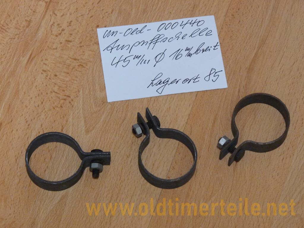 Auspuffschelle Durchmesser 45 mm, 16 mm breit. Der Artikel stammt aus einem BMW Neuteilelager in dem auch vereinzelt Teile anderer Fabrikate lagen |