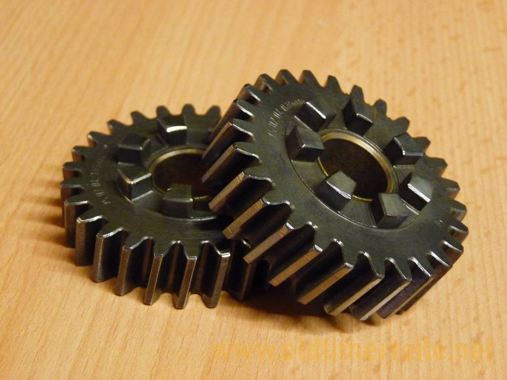 Output shaft with two drive wheel, Hurth-No.: 75.02.02.2, second number not visible |