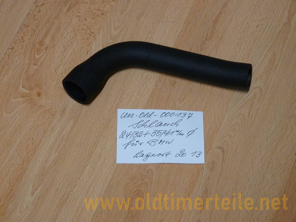 Schlauch 25/32 mm Durchmesser, ca. 235 mm lg. für BMW 2500/2800 und 2800CS, Art.-Nr.: 9053 oder 9063, vom Ansaugrohr zum Thermostat, BMW.-Nr.: 11531250??? Schlauchaufdruck zum Teil unleserlich. Die Teile stammen aus einem BMW Neuteilelager