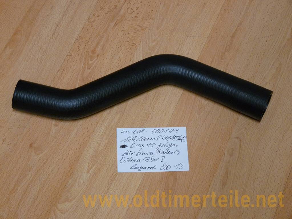 Schlauch 40/48 mm Durchmesser, 2x ca. 45Grad gebogen, für Simca, oder Renault oder Citroen? Die Teile stammen aus einem BMW Neuteilelager in dem auch einige neue Fremtfabrikate lagerten