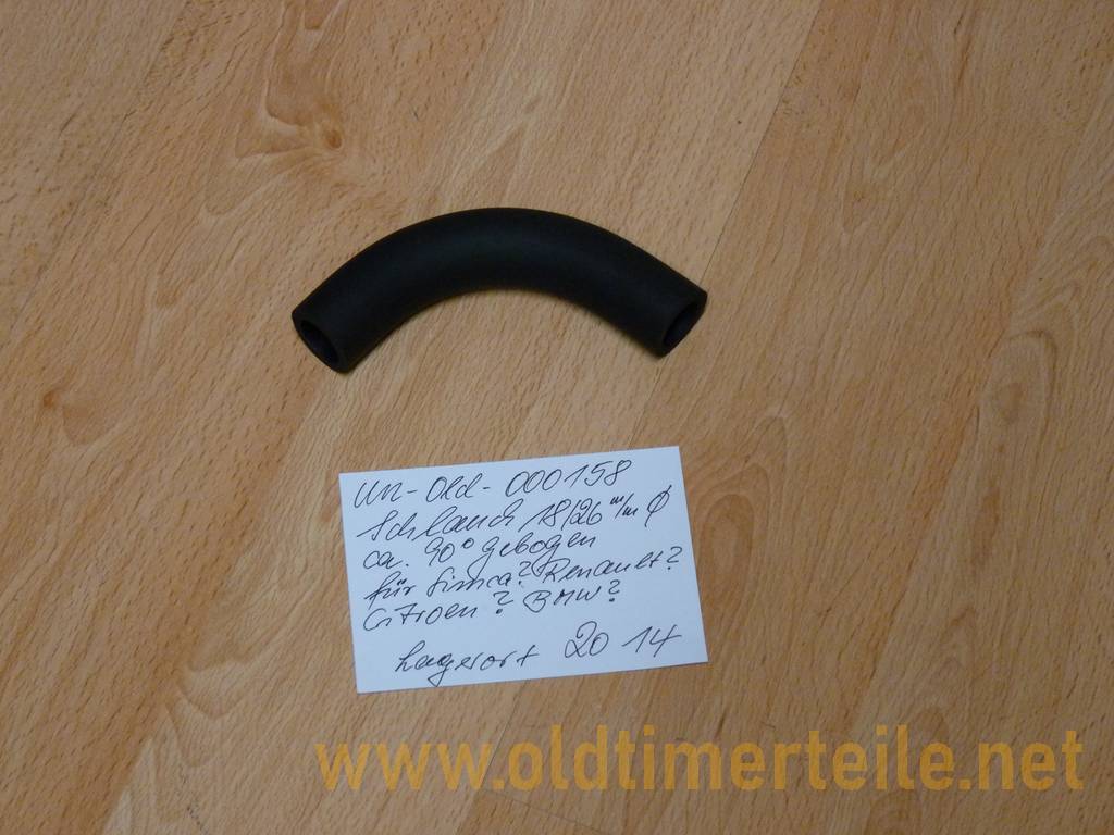 Schlauch 18/26 mm Durchmesser, ca. 90 Grad gebogen, für Simca, oder Renault oder Citroen? Die Teile stammen aus einem BMW Neuteilelager in dem auch einige neue Fremtfabrikate lagerten |