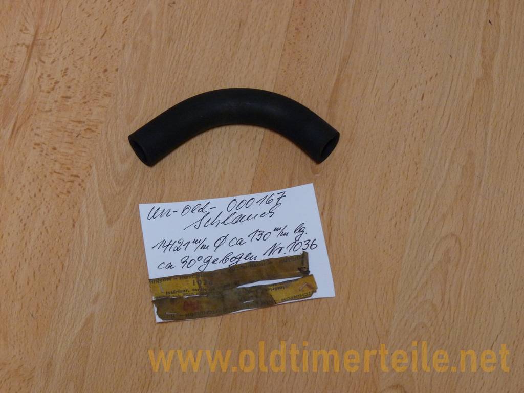 Schlauch 14/21 mm Durchmesser, ca. 130 mm lg. ca.90 Grad gebogen, für Simca oder Renault, Nr. 1036 Die Teile stammen aus einem Neuteilelager |