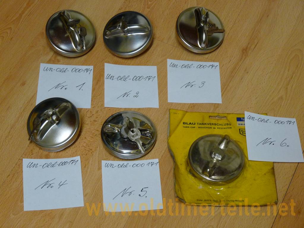 Fuel filler cap No. B60 AG make blue, made of stainless steel, for BMW 1600/2, 2002 and Touring models, with 2 keys each The parts are from a BMW new parts warehouse abandoned in the 1980s |