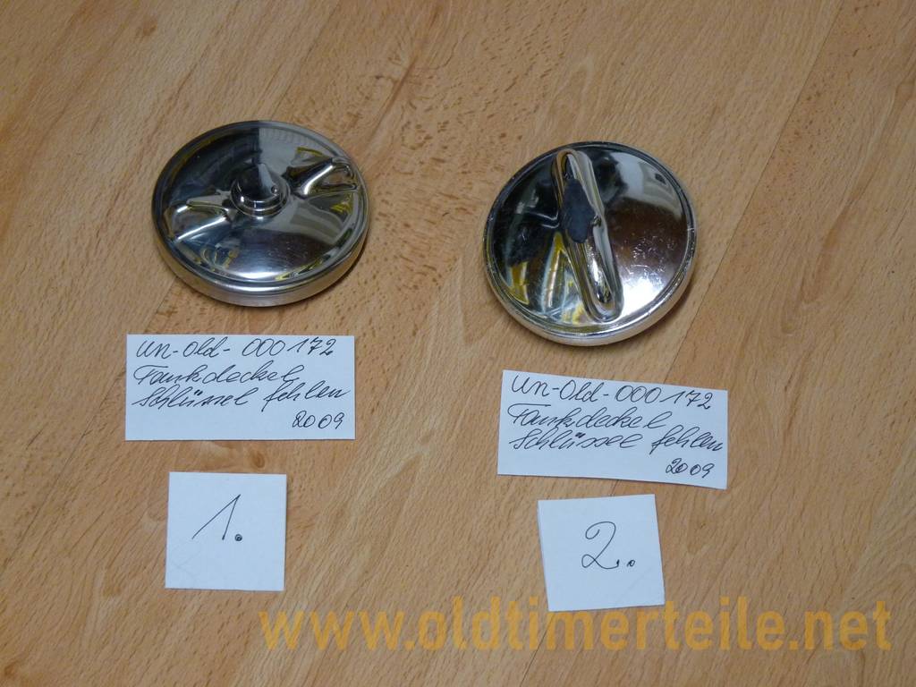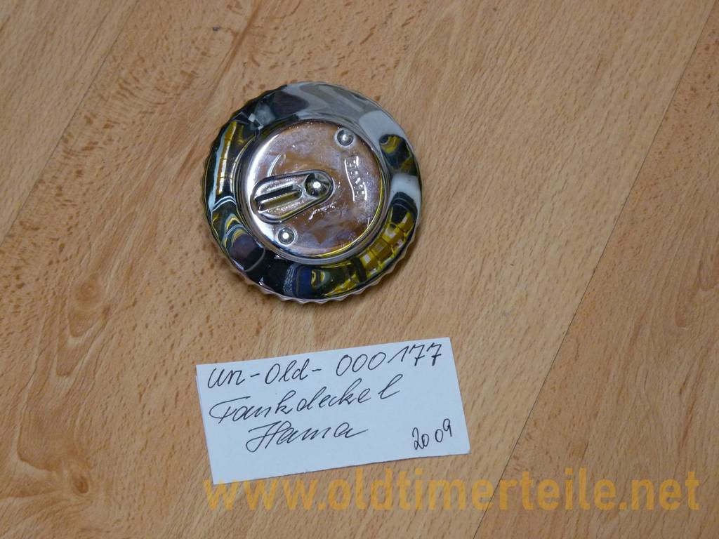 Fuel filler cap HAMA brand, high-gloss chrome-plated, 77 mm diameter, inner diameter 68 mm, without ventilation, with 2 keys in the original Hama packaging with warranty certificate Signed by hand “VW from year of manufacture 1961 The fuel filler cap comes from a BMW new parts warehouse from the 1960s to 1980s |