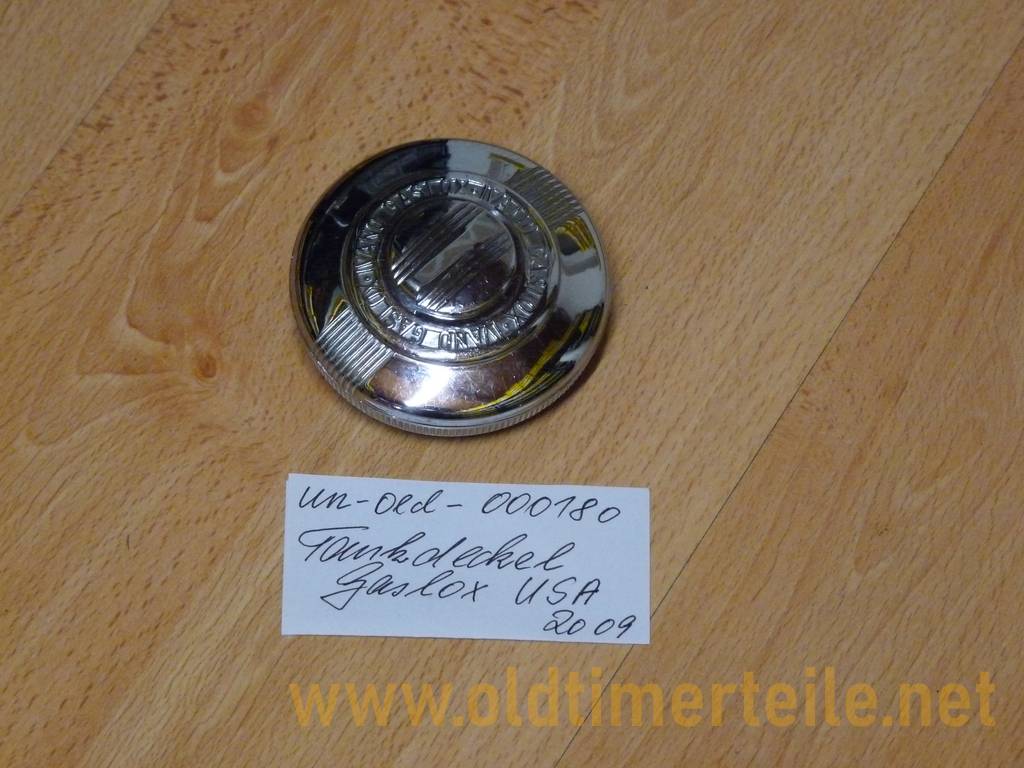 Fuel filler cap make GASLOX IVANO, Made in USA, patent no. 2125819 diameter 80mm high gloss chrome plated, key missing! The petrol cap comes from a BMW warehouse liquidation in the 70s to 80s in Africa |