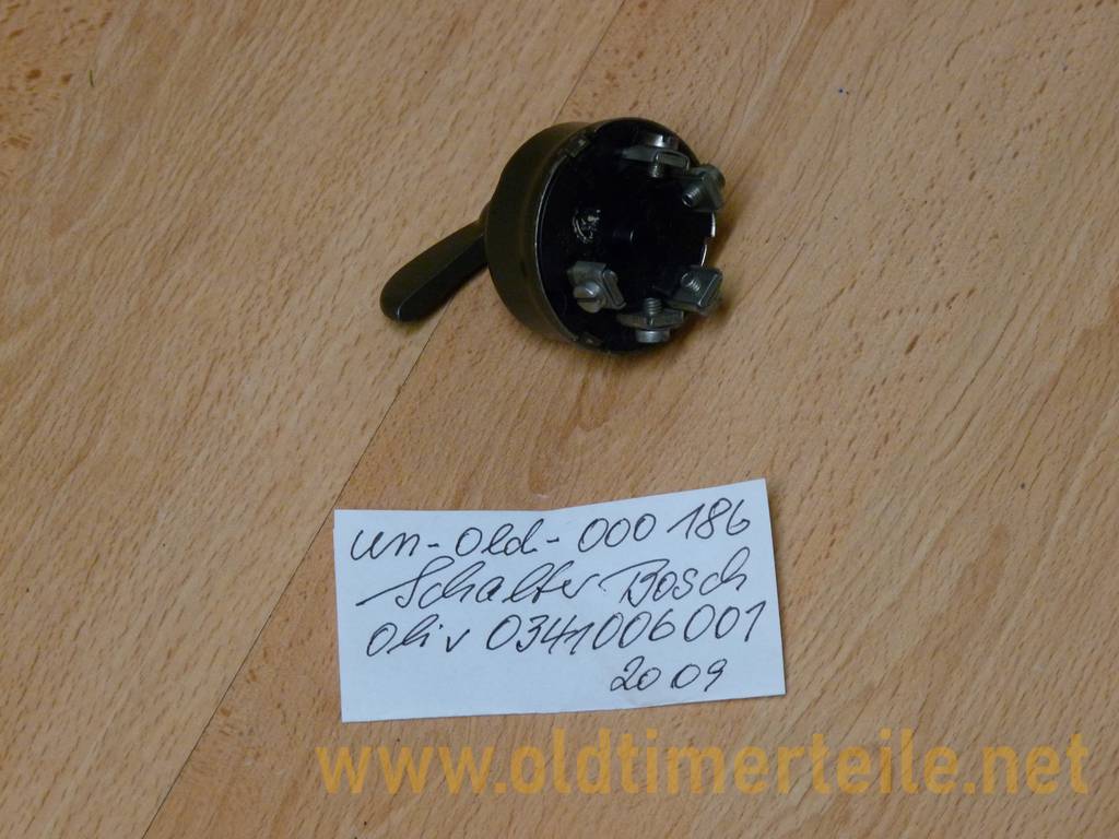 Switch with horn and Bakelite toggle, 5-pin, but the union nut is missing, colour olive, Bosch no.: 0341006001; 0341 006 001 The part comes from a disused vehicle new parts warehouse |