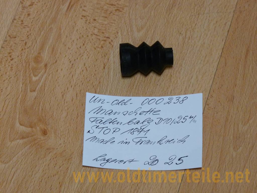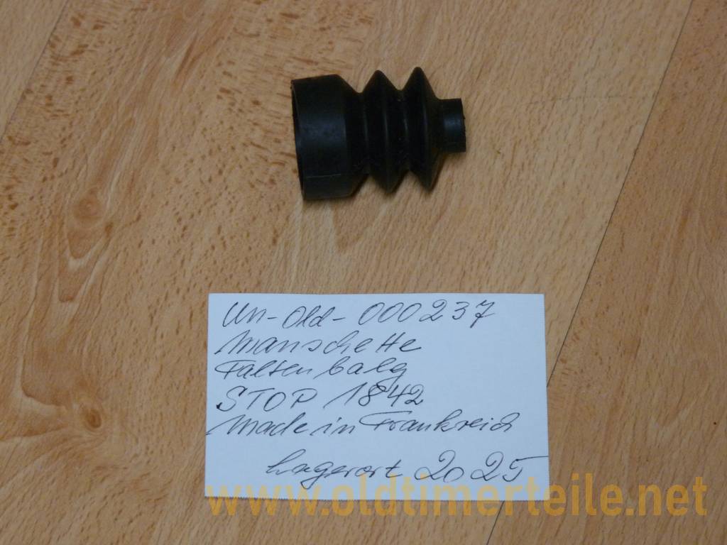 Boot bellows, diameter approx. 10 mm on one side, approx. 25 mm on the other, height approx. 46 mm, for brake cylinders -STOP 1841- Made in France The bellows are part of the STOP repair kit 45.33 4533 The parts come from a BMW new parts warehouse which also occasionally stocked parts from Peugeot, Citroen and Renault |