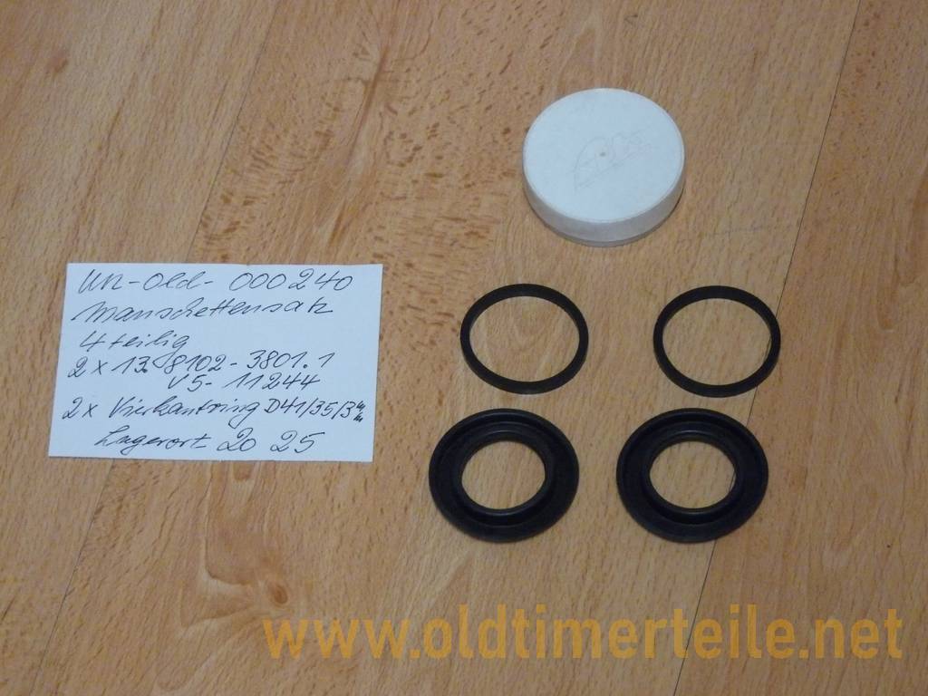 Repair kit for brake caliper 4-piece consisting of 2x 13.8102-3801.1, V5-11244 ATE, boot and 2 x 4-ct. Ring D41/35 mm 3 mm thick, matching. The parts come from a BMW new parts warehouse which also occasionally stocked parts from other makes |