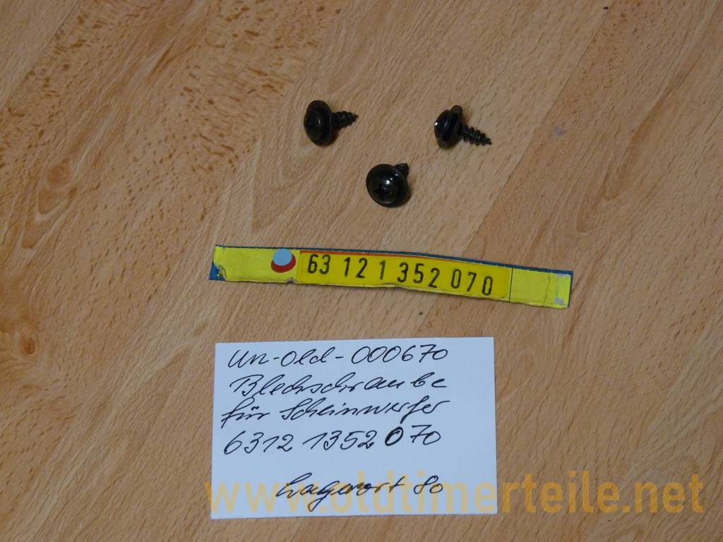 Sheet metal screw for headlights, for 5‘E12 and 3’E21 and 7‘E23 and 6’E24 and 5‘E28 and 3’E30/Z1 The parts come from a BMW new parts warehouse