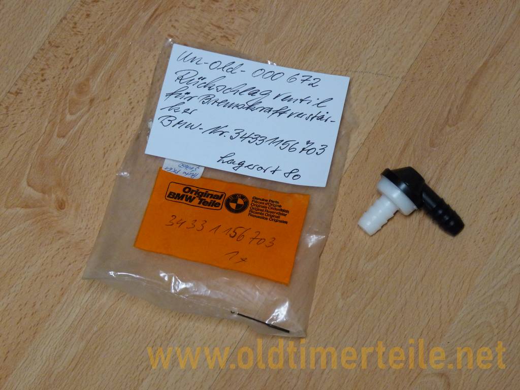 Non-return valve for brake booster, for 4‘E12 and 3’E21 and 6‘E24 and 5’E28 and 3'E36/Z3 The parts come from a BMW new parts warehouse