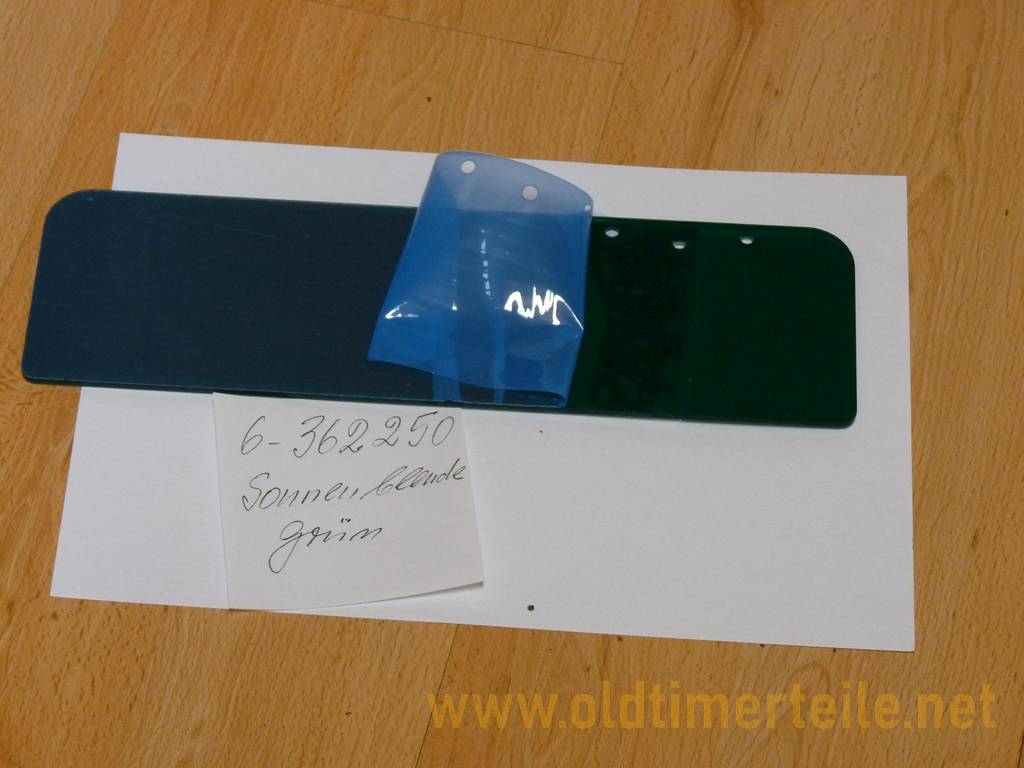 Sun visor green-transparent, interior, for right and left side, 3 holes already drilled for the missing bracket mount, semi-finished. |