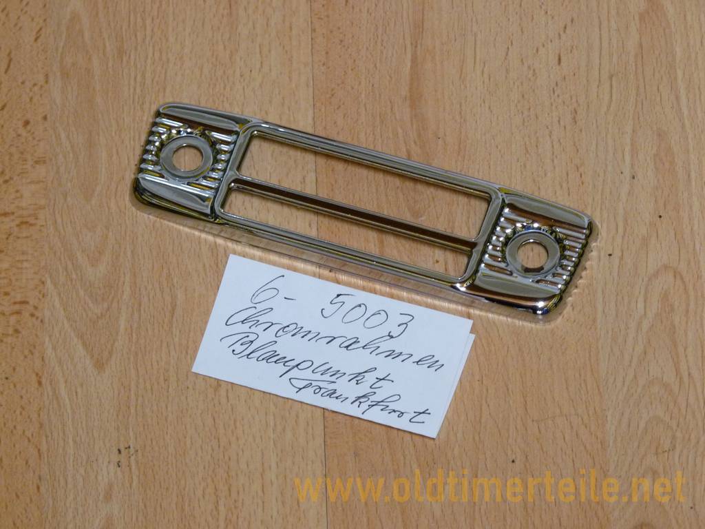 Radio bezel high-gloss chrome frame, for Blaupunkt Frankfurt car radio. Dimensions: overall length 170 mm, overall width 49 mm, hole spacing 130 mm |