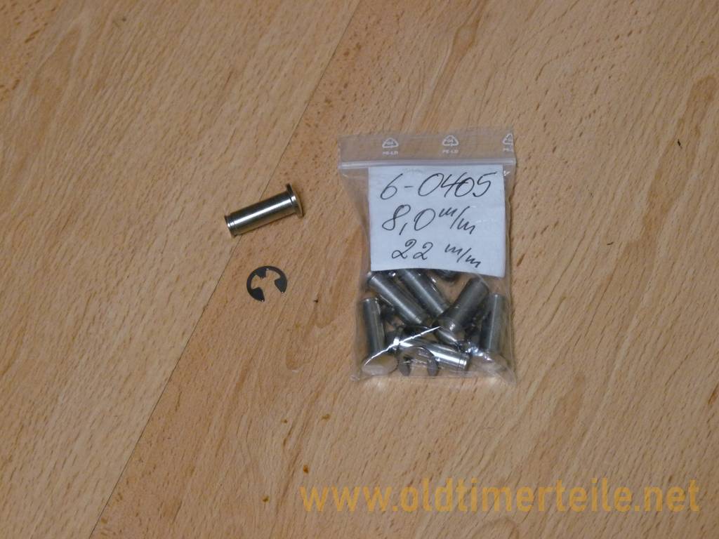 8.0 mm for the door hinge on the Isetta and BMW 600, with stainless steel retaining ring. The length measured without the head to the snap ring groove is 21 mm. 8,0mm für das Türscharnier Isetta und/oder BMW 600, mit Sicherungsring aus Nirostastahl. Die Länge beträgt ohne Kopf bis Sprengringnute 22mm |