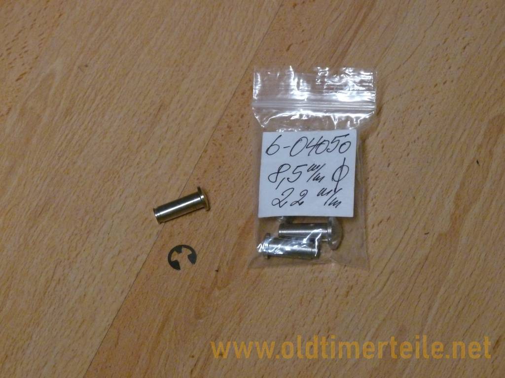 8.5 mm for the door hinge on the Isetta and BMW 600, with stainless steel retaining ring. The length measured without the head to the snap ring groove is 22 mm. 8,5mm für das Türscharnier Isetta und/oder BMW 600, mit Sicherungsring aus Nirostastahl. Die Länge beträgt ohne Kopf bis Sprengringnute 22mm |