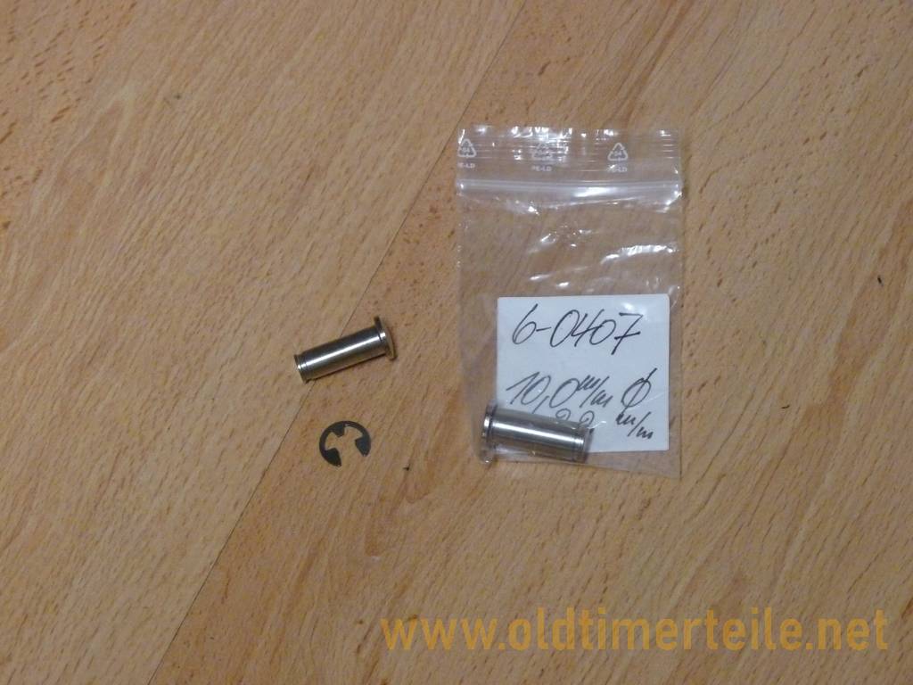10.0 mm for the door hinge on the Isetta and BMW 600, with stainless steel retaining ring. The length measured without the head to the snap ring groove is 22 mm. 10,0mm für das Türscharnier Isetta und/oder BMW 600, mit Sicherungsring aus Nirostastahl. Die Länge beträgt ohne Kopf bis Sprengringnute 22mm |