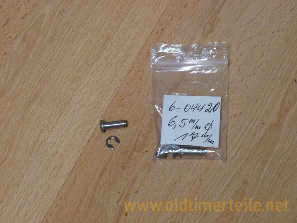 6.5 mm for the door hinge on the Isetta and BMW 600, with stainless steel retaining ring. The length measured without the head to the snap ring groove is 17 mm. 6,5mm für das Türscharnier Isetta und/oder BMW 600, mit Sicherungsring aus Nirostastahl. Die Länge beträgt ohne Kopf bis Sprengringnute 17mm |